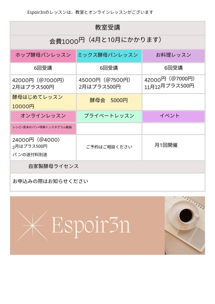 酵母パンレッスン、料理レッスン、